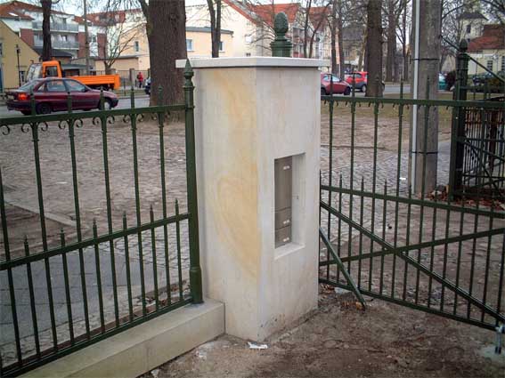 Komplett aus Sandstein (165x62x50cm) mit scharrierter Oberfläche, eine